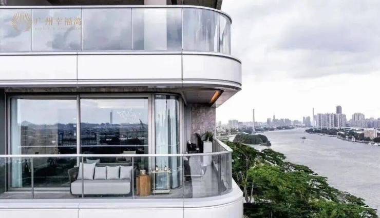 更震撼的体验,是当你步入阳台时。弧形玻璃的设计,让江景全画幅被你的视觉所占有,带来极强的视觉冲击力。驻足于此,你不需要去眺望江景,而是开阔的珠江直接将你环抱。