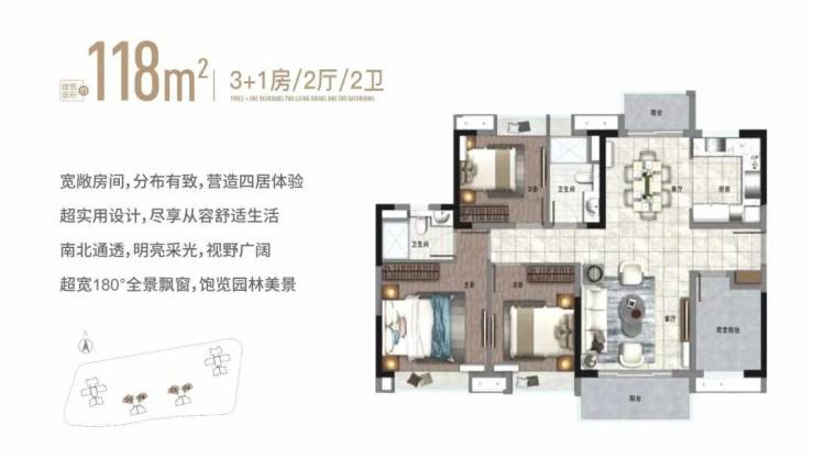 户型实用:主力89-143㎡三至四房,南北双阳台、270°飘窗设计,得房率80%。