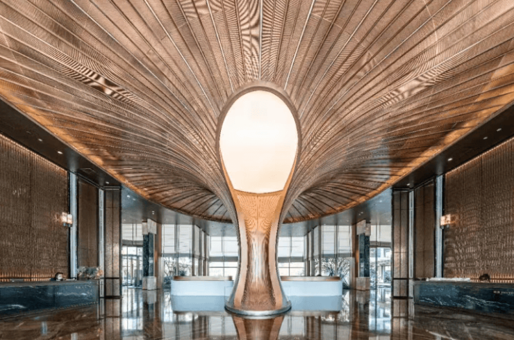 大堂的生命之树,是耗时1000小时雕刻拼接的,象征着永不凋谢的生命力,寓意家族基业长青。