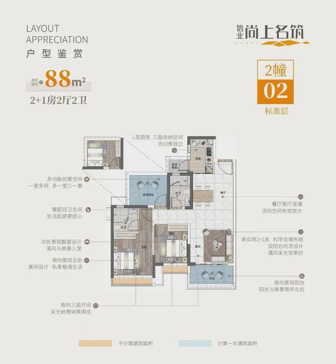 ☀实用88㎡2+1房2厅2卫【南向景观】