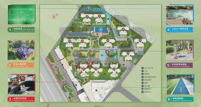 项目规划约20万㎡公园式全龄社区。配有约400㎡游泳池、儿童乐园、羽毛球场、有氧环形跑道、多功能活动场地及主题性泛会所等超20项康娱设施。实现家门口的社交主场,没有距离的朋友圈。