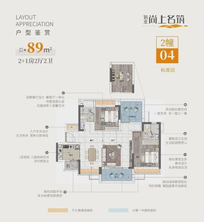 ☄89㎡2+1房2厅2卫【南向景观】