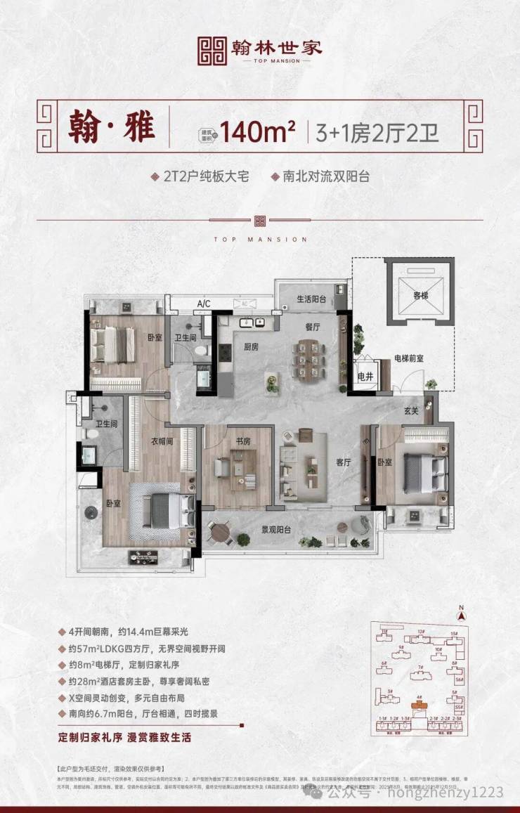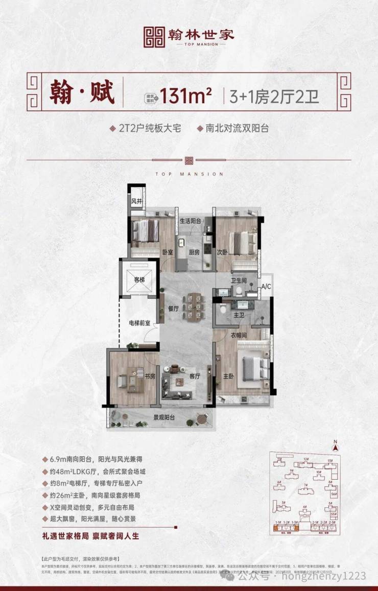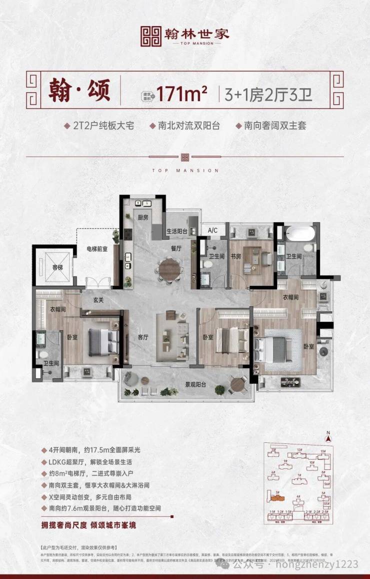 2T2户纯板大宅 | 南北对流双阳台 | 南面约6.9米全屏观景阳台