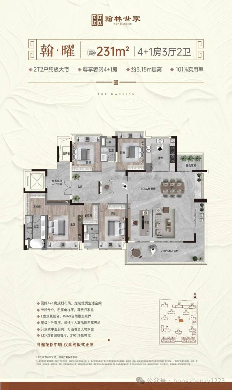 2T2户纯板大宅 | L型观景阳台,270°环景领域 |约3.15m层高|101%使用率