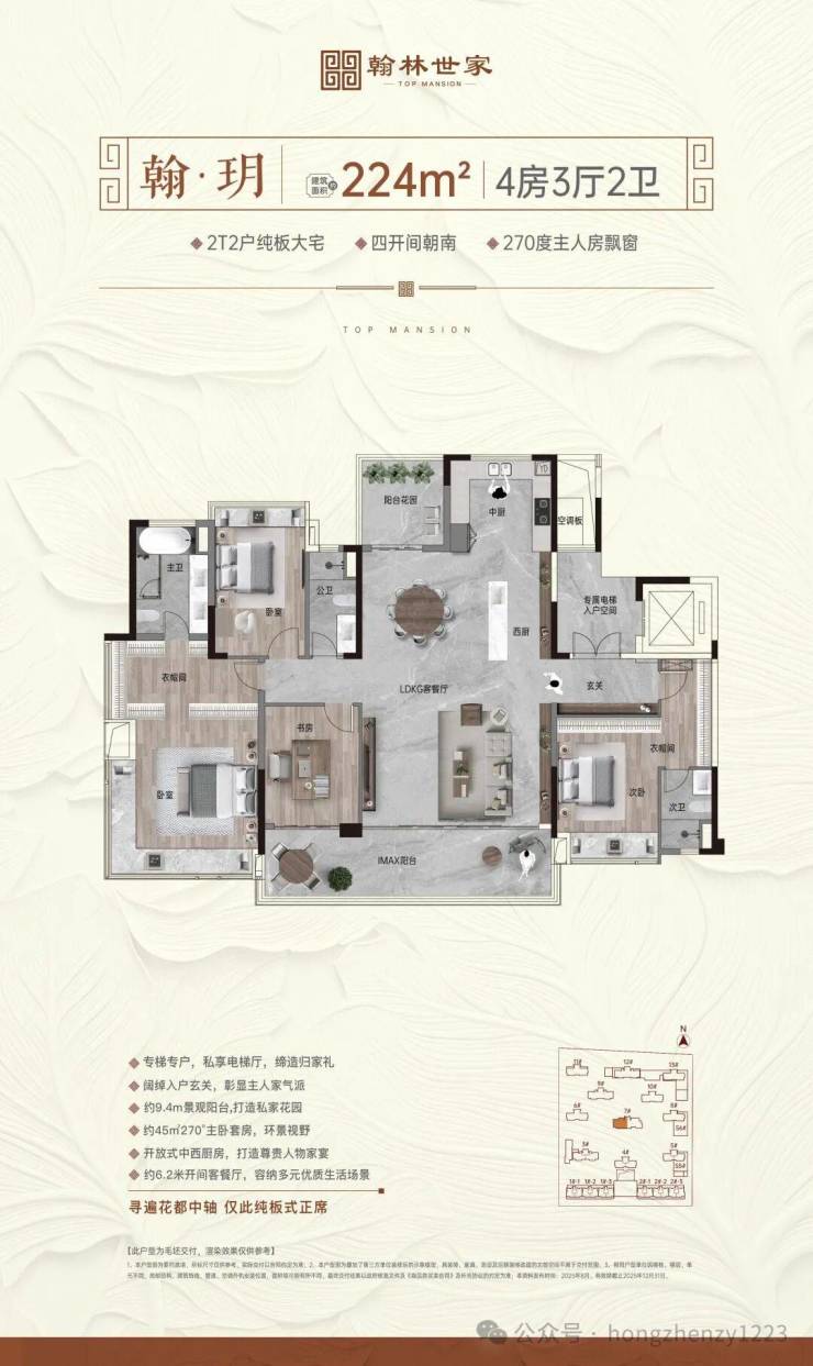 2T2户纯板大宅 | 4开间朝南,约9.4m景观阳台 |270度主人房飘窗