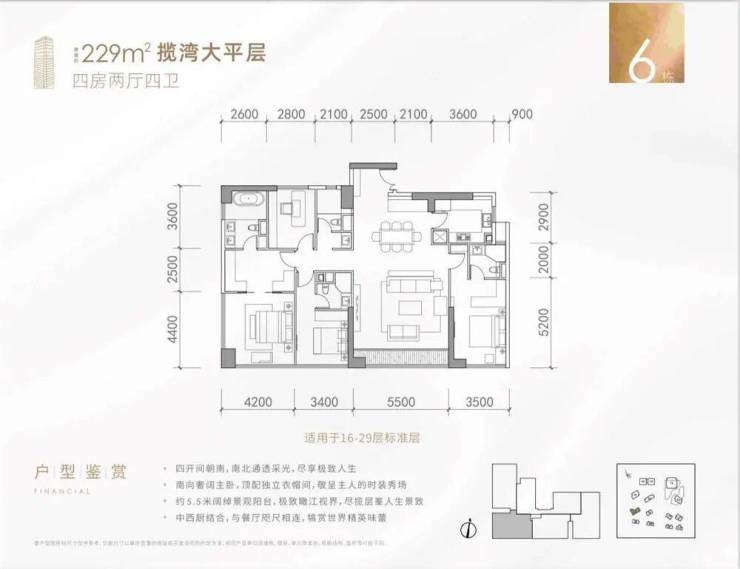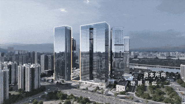 项目一线临江,搭配现代商务全玻璃幕墙,南高北低,最大程度展现一线江景。