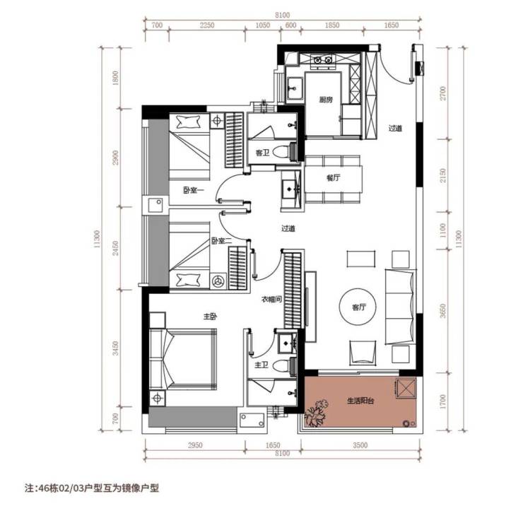 采用点状式独栋设计,楼距近百米,270°无遮挡视野最大化采光通风;77-133㎡户型覆盖两房至四房,120㎡、133㎡南北双阳台户型可同时俯瞰前山河支流(鹅咀涌)与社区园景,成为改善型客户首选。46栋更提供精装、毛坯双选项,适配不同置业需求。