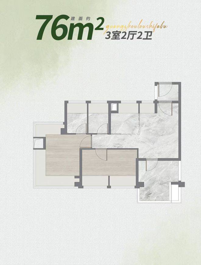 项目精准洞察市场需求,推出符合新规的高实用性户型,76-106㎡三至四房产品覆盖刚需至刚改客群,得房率优势显著。76㎡三房两卫作为入门级户型,采用 LDKB 一体化宽厅设计,空间利用率高,满足三口之家日常所需,厨房操作时可随时关注客厅活动的孩子,主卧 270° 湖景视野更是一大亮点。