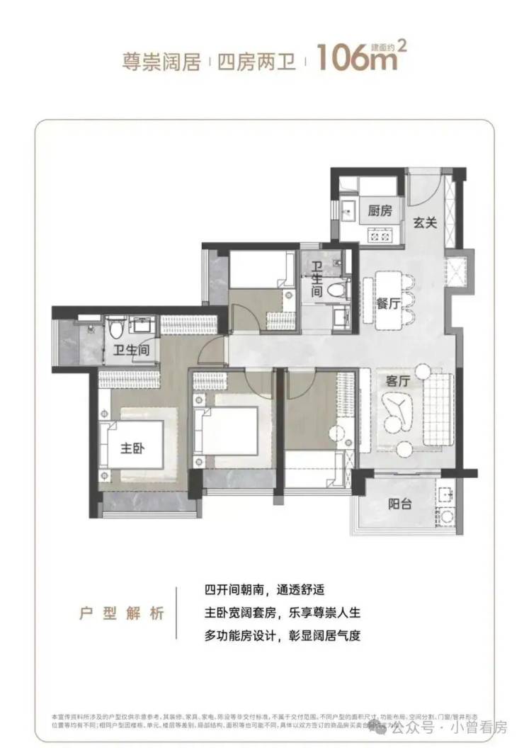 产品面积:约67-106㎡二至四房