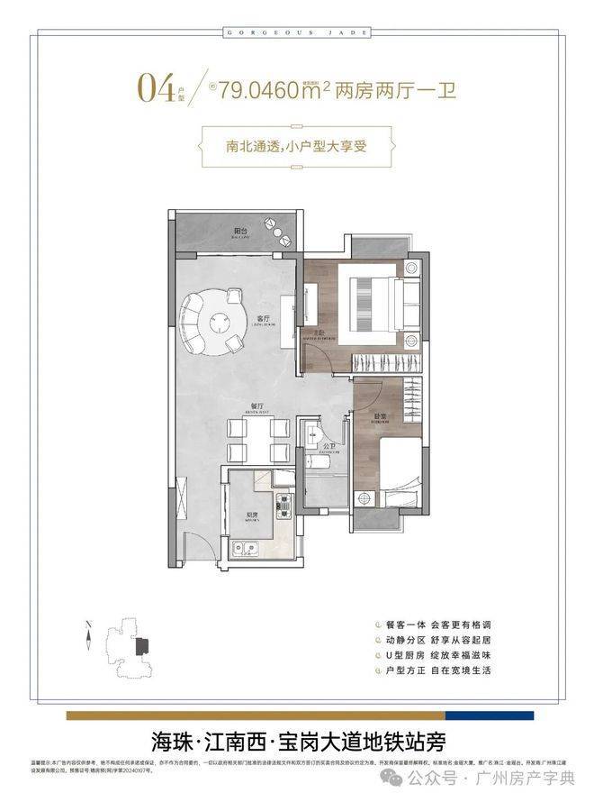2/8号线双地铁上盖:约280米即达8号线宝岗大道站,20分钟直通达珠江新城;约800米2号线江南西地铁站,可通达广州南站等大型交通枢纽;