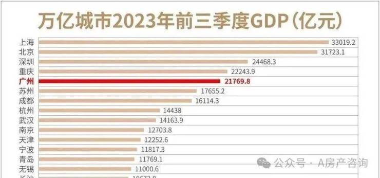 今年全国24座“万亿城市”GDP三季报表明,广州前三季度GDP为21769.84亿元,同比增长4.2%,排名第五。作为唯五破2万亿的城市之一,不同于其他直辖市、经济特区,广州是唯一的省会城市。