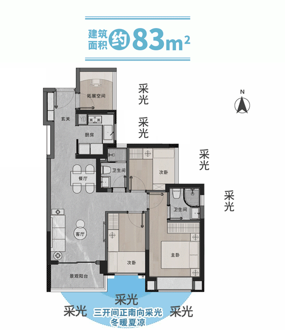 广建·云城学府响应新规,优化自身产品的户型设计,每个户型都能做到过100的使用率,且全产品均采用N+1户型设计,不仅为孩子留下一方安静的书桌,更能满足人生的各个阶段需求。从69㎡的2+1房户型,到83/93㎡的3+1房户型,110/182㎡的4+1房户型,无论单身生活,二人世界,三口之家,三代同堂都能应对自如。