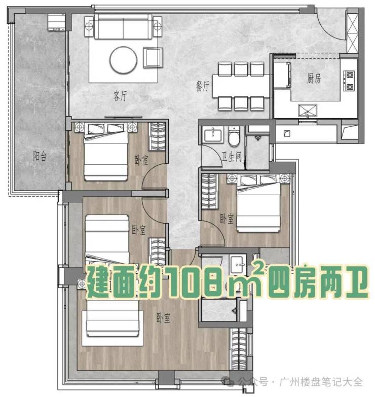 约108㎡四房两卫;