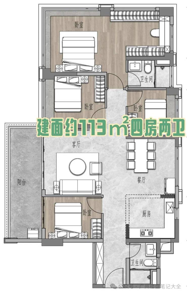 约113㎡四房两卫;