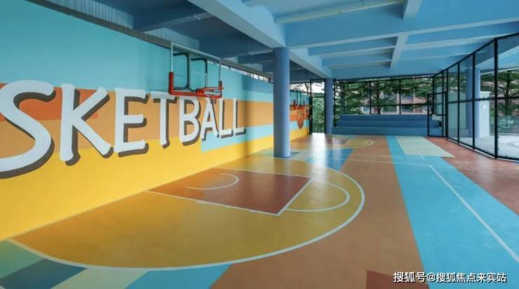 在网球场下,是下沉式的星级泳池和儿童趣味篮球馆。