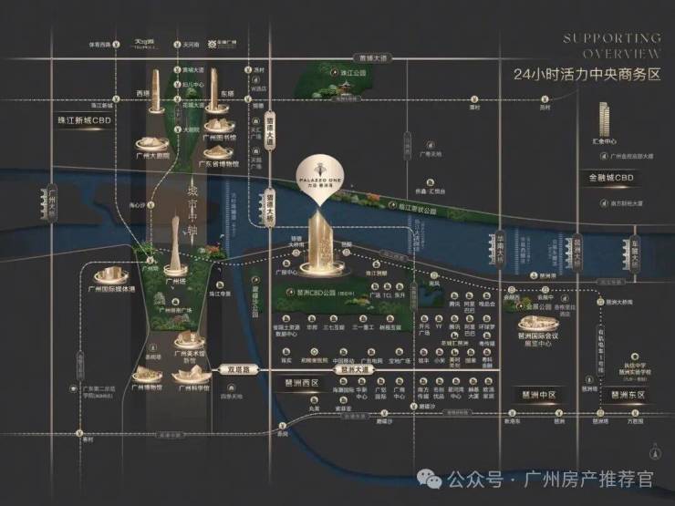 项目西面与广州塔并肩而立,距离世界级地标商圈广州塔广场仅约1.5公里,享受同步国际的顶奢资源。北望珠江新城CBD璀璨繁华,与亿级江景豪宅侨鑫汇悦台、广粤天地共享同一江境。楼下则是正在建设中的琶洲π艺术馆,将打造成琶洲一流商务文体核心地,营造艺术与生活密不可分的美学体验。