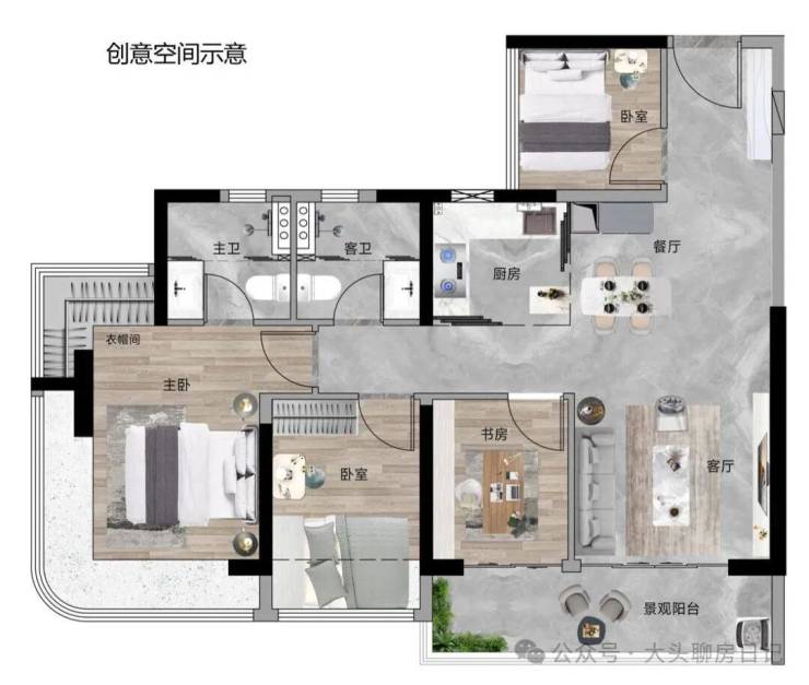 80-125㎡可生长空间、270°全南向瞰山奢居、约100−103%高空间使用率