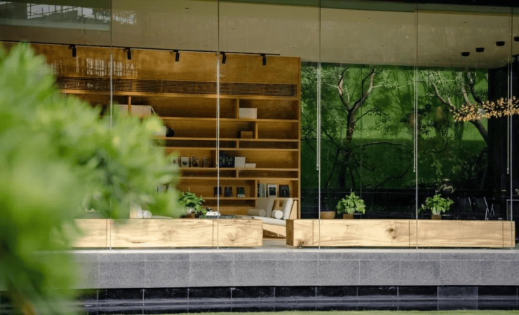:以宝格丽酒店风格为灵感,融合岭南园林“余荫山房”精髓,移植百万级罗汉松、祖母绿名石照壁,打造可观可品的森林景观环抱体系;