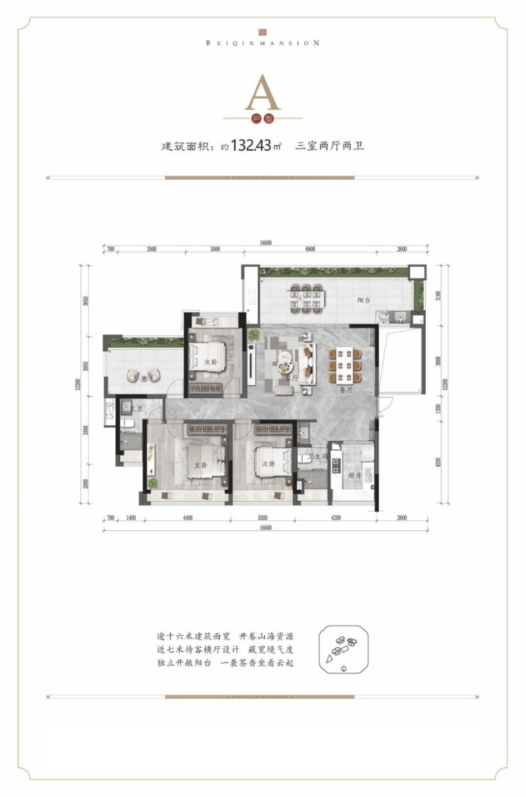 北秦华府主力户型逾16米建筑面宽,于世界湾心的寸土寸金的资源里,府藏奢阔天地;约4.2~6.8米横厅设计,逾9米奢阔观景阳台,于热带山海之间,体验生活悠然;甄选品牌精装,宽奢钢质子母入户门,LOW-E中空静音玻璃,无忧生活体验;社区布局健身步道、泳池、儿童乐园,为全年龄人群,提供运动、健身体验。