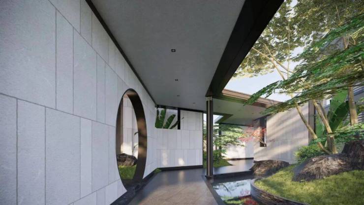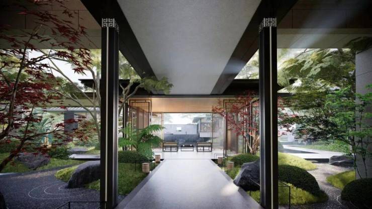 北秦华府园林景观以叠石奇景,精巧花木为主,赋山形,观山语,呈现了一种如居山中的归家体验。二进镜水院,以水景、曲桥、角亭为主,呈现了符合中式生活特色的园林空间。项目园林以环绕式连廊、点景亭台、曲桥竹径,将山水园境串联,归家、入户、观景、会友合而为一,一步一景,归心生活。