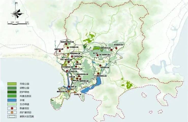 吉阳区开敞空间划分为综合公园、郊野公园、专类公园、广场四种不同类型,补充完善网络化、品质化的城市步行通廊,形成城野交融的山水城市空间新格局。