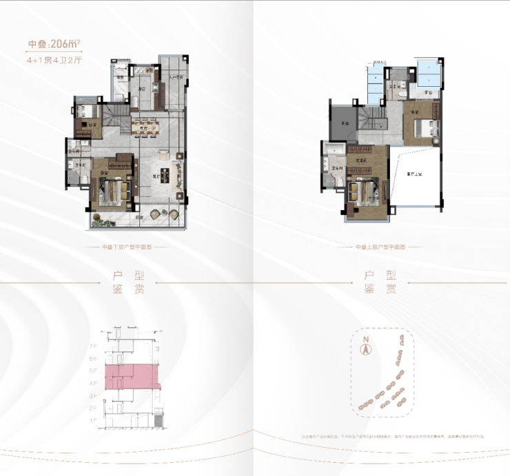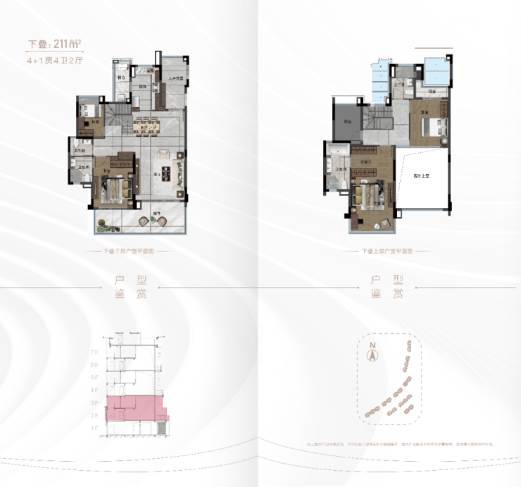 • 203-211㎡下叠:带500㎡花园及地下室,6.3米挑高客厅,主卧套房设计,总价690万起。