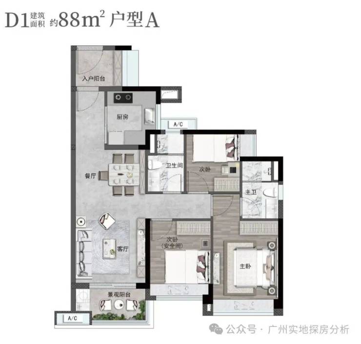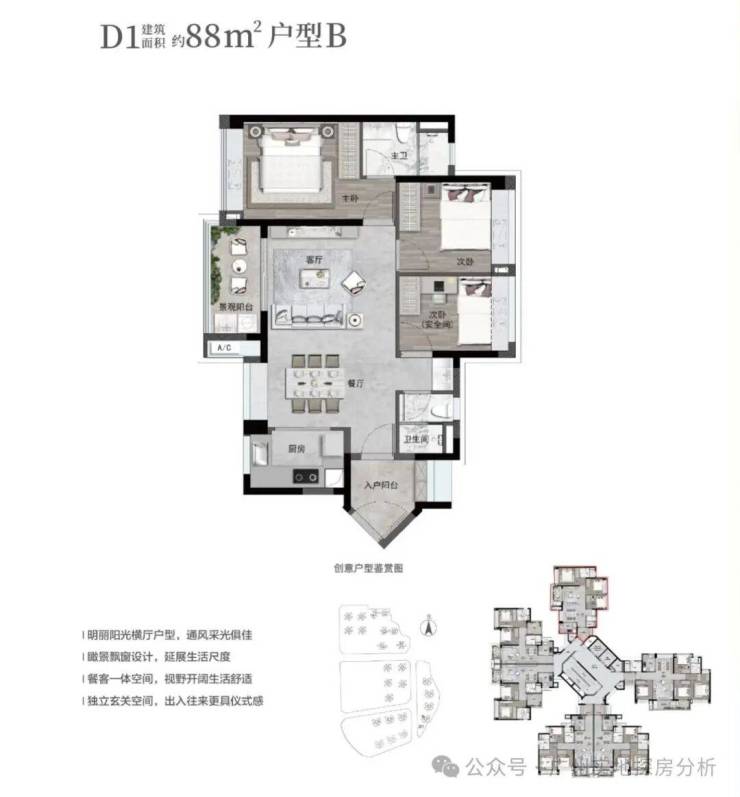 3、户型实用,得房率高,部分户型可达95%以上,户型设计灵活,有两房、三房、四房等多种选择,满足不同家庭需求。