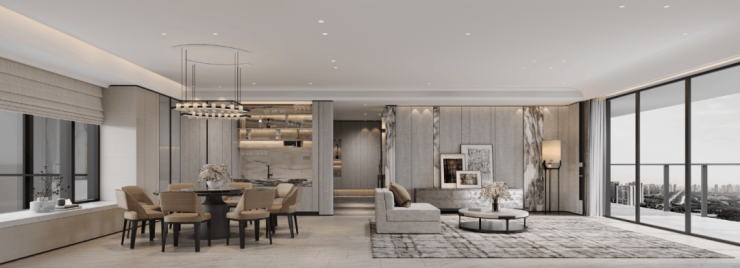 梁志天大师采用温润雅奢的风格打造330㎡产品精装设计,使用木石等自然质感的材料,体现了亚洲文化的温暖和亲近自然的特点,同时也符合现代设计对质感的追求。