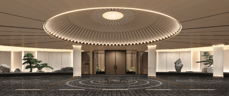 会所整体用材运用石材、木饰面、陶瓷等元素,还原材料本身的触感以及自然的舒适度,来打造东方典雅的空间。同时通过材质的延伸,呼应与建筑景观的一体性。