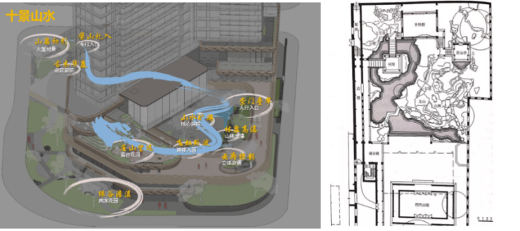 【设计理念】景观的朱弘博大师根据“城市山林”的空间意向,提出“外得江湖,内得山水”的设计理念,寓意一种山中有城、城中有山的意境,将山水园林的古典美学与现代都市生活完美融合。