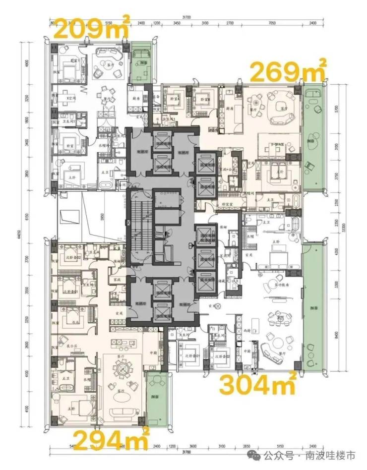 ——低区 5F起(150米以内)是约209-304㎡四房大户型;
