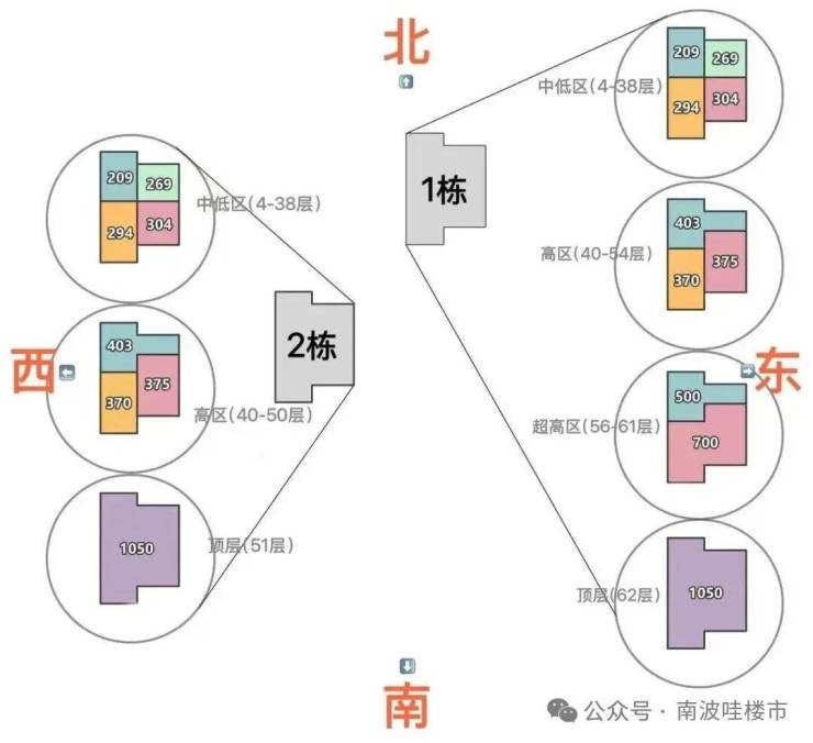 ——超高区 58F起(200米以上)是约500-700㎡顶级大平层;
