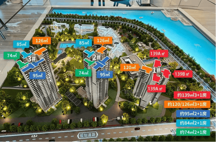 另外,项目规划容积率仅为2.55,带有假日泳池、滨海公园、篮球场等多功能多龄段活动场所。