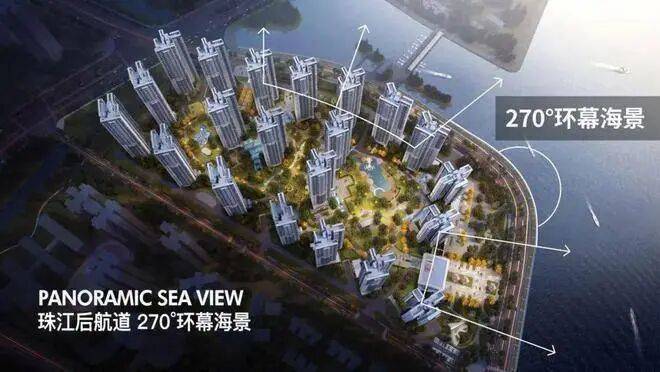从效果图来看,项目采用东低西高、围合式的布局,最大化利用双面海景的地段优势,东面和北面均可看狮子洋,景观面十分宽阔。