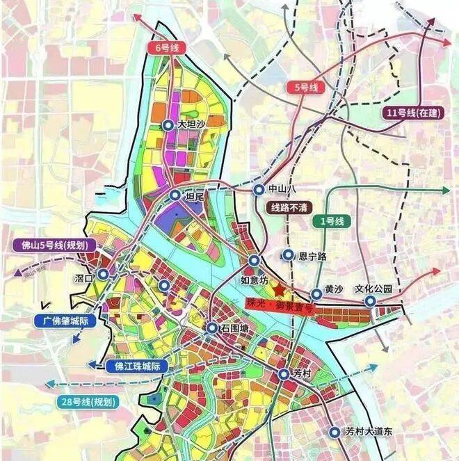 地铁——广州1号线-黄沙 (402米) 、1号线-长寿路 (1048米) 、1号线-芳村 (1321米) 、6号线-如意坊 (708米) 、6号线-文化公园 (1348米) 、5号线-中山八 (1714米);
