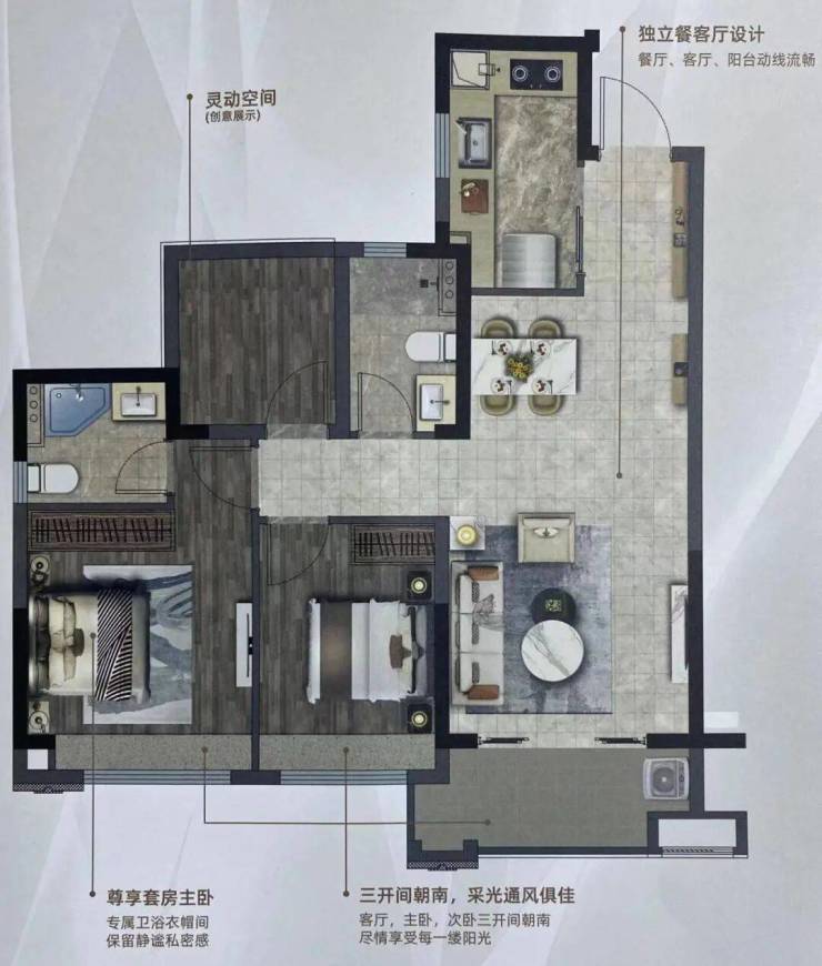 2. 88㎡,三房二卫户型