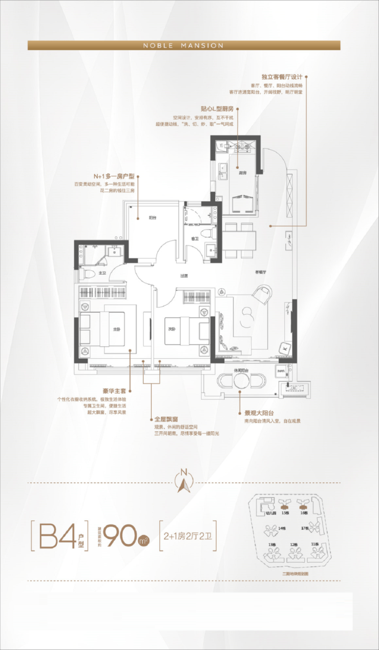 4. 90㎡,三房二卫户型
