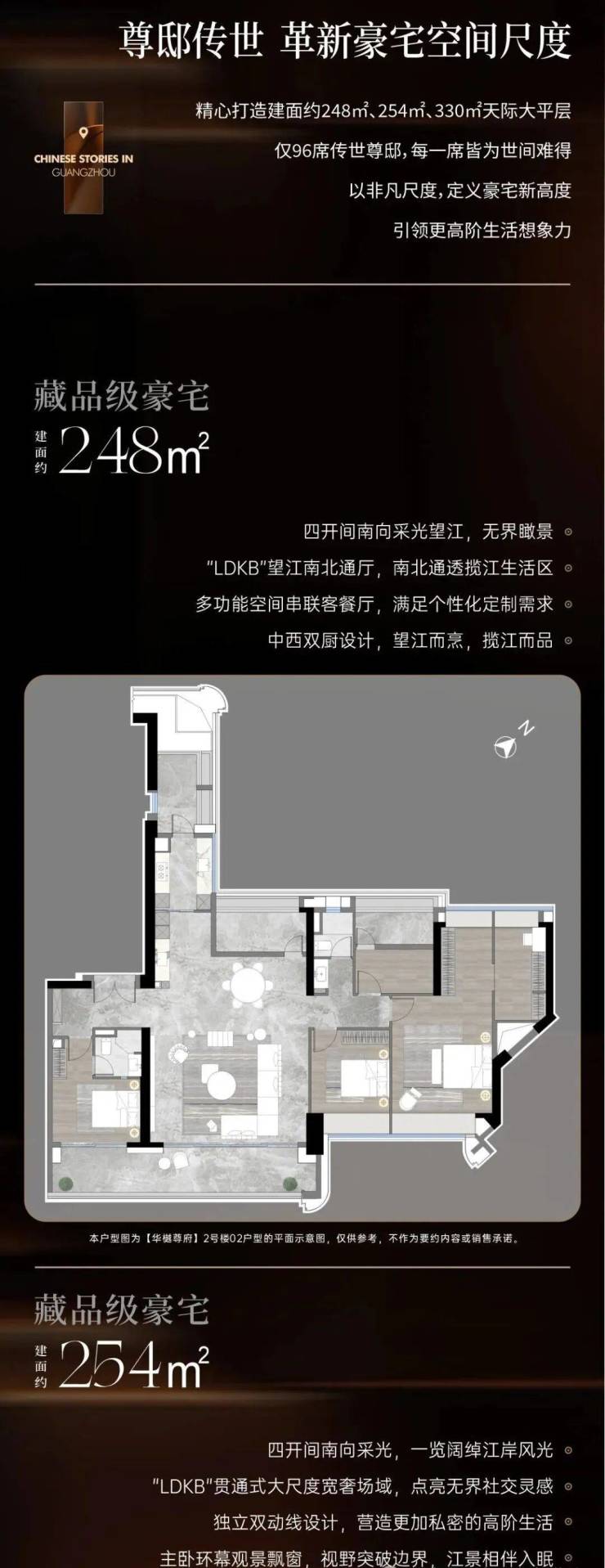 【绿化率】:35%【总楼栋】:1栋【总户数】:96户【梯户比】:2梯2户、2梯1户【项目户型】:248-253-330㎡天际大平层