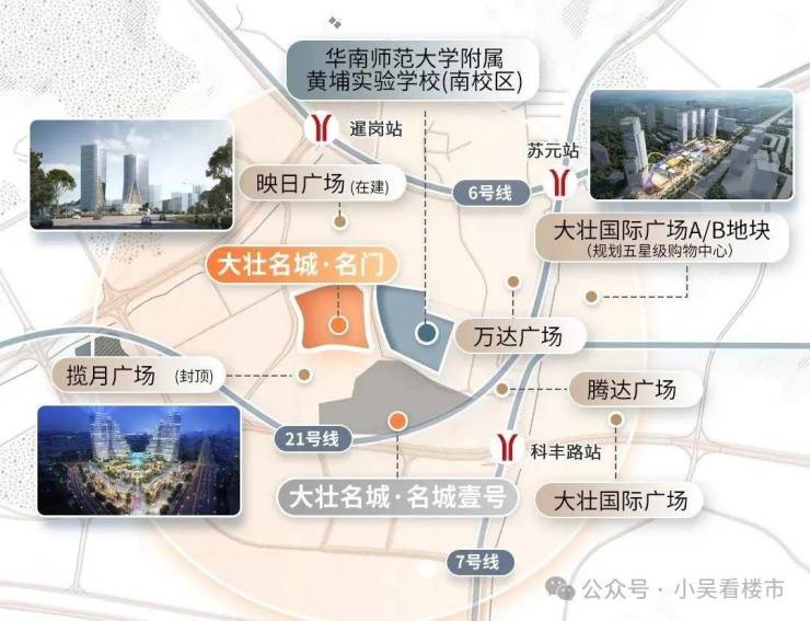 更为重要的是,大壮名城旁边的大壮国际广场A/B地块,将携手国内顶尖的商业开发团队,打造为广州第二家超五星级购物中心,未来将对标太古汇!周边还有香雪城、敏捷广场等商业。