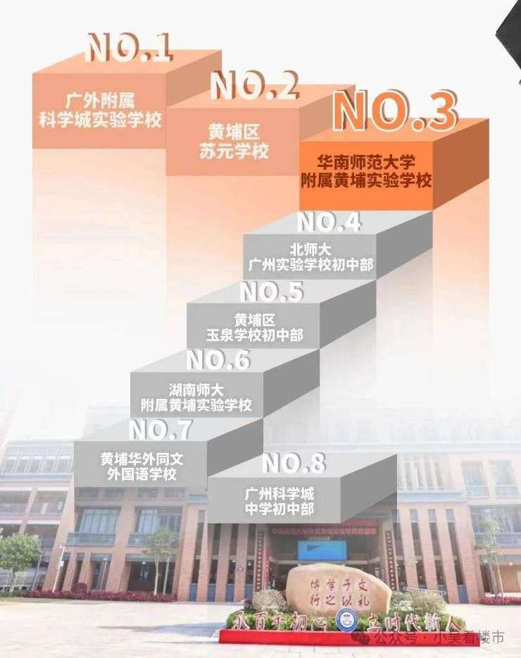 2023-2024年,初中部期末平均分(网上公开报道)排到科学城片区TOP3,前一位则是办学历史稍长一点的苏元学校,要知道,华师附黄埔实验学校,开学仅仅两年,作为一个新学校,能有这样的成绩,就是公认的牛。