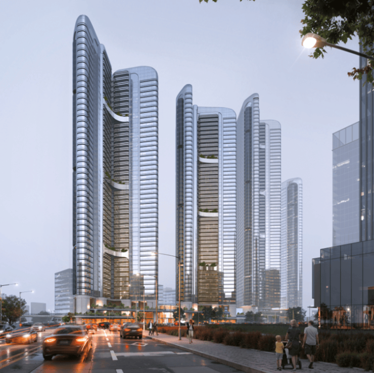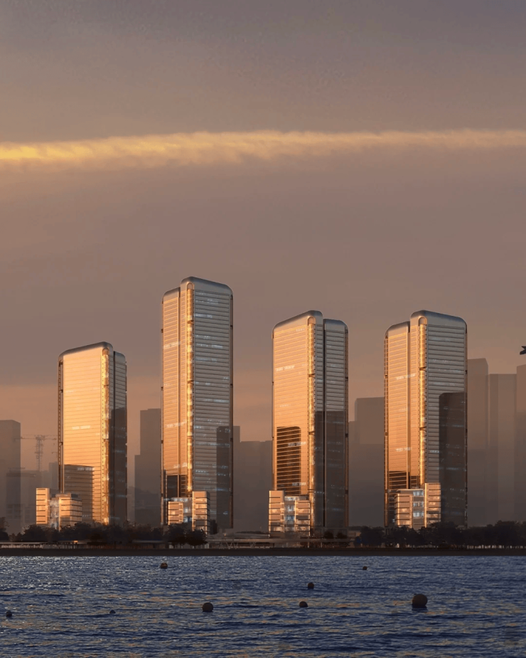 首期主要由两座分别楼高50层,总建筑高度210.3米以及楼高48层,总建筑高度202.5米的商业大楼组成,另在江边有两座矮座总部办公大楼。