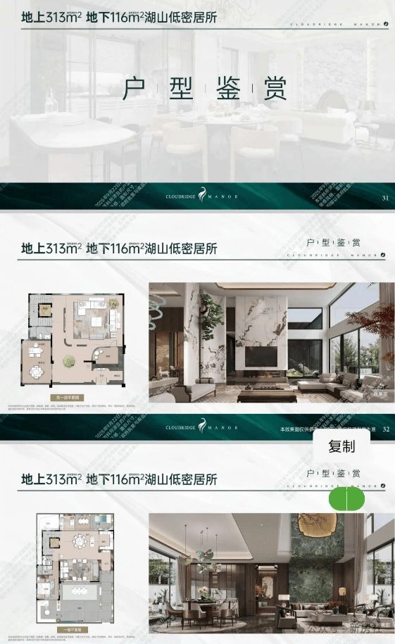 叠墅在售户型:地上199-377㎡、地下61-165㎡的“云缦”组团湖山低密别墅群