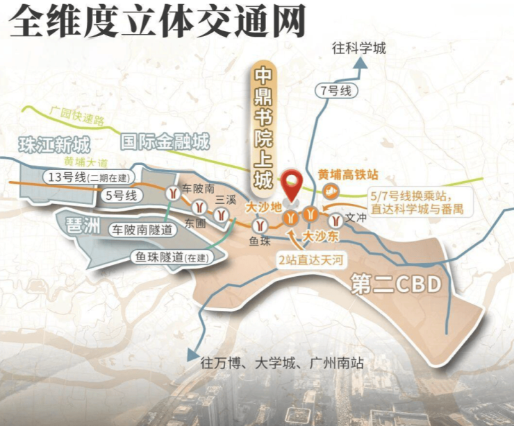 中鼎书院上城珺翎府坐落广州黄埔老黄埔横沙核心,由中鼎集团倾力打造,深耕横沙旧改16年,是板块内人文生态型刚需改善标杆楼盘。项目地处第二CBD核心,邻近珠金琶三大CBD,步行800米达5号线大沙地站,2站直达天河,20分钟通达珠江新城,周边多维路网便捷,依托横沙书香街人文底蕴,楼下即是东苑公园与东苑湖,兼具通勤、人文与生态优势,适配刚需至改善全阶人群。