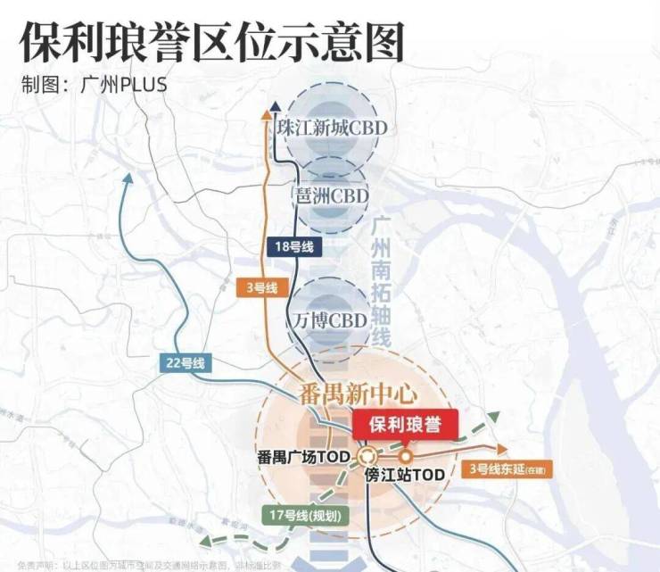 保利琅誉,位于“番禺广场+番禺客运站”双TOD上,与3号线东延段傍江站(在建中)直线距离约590米,一站即达番禺广场站:地铁3号线、18号线、22号线、3号线东延段(在建中) 、17号线(规划中),五轨交汇,一站畅行琶洲,两站通勤珠江新城