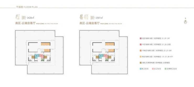 38-44F,是企业会客厅,约338-479㎡ 45-47F,约1427-1596㎡(整层)