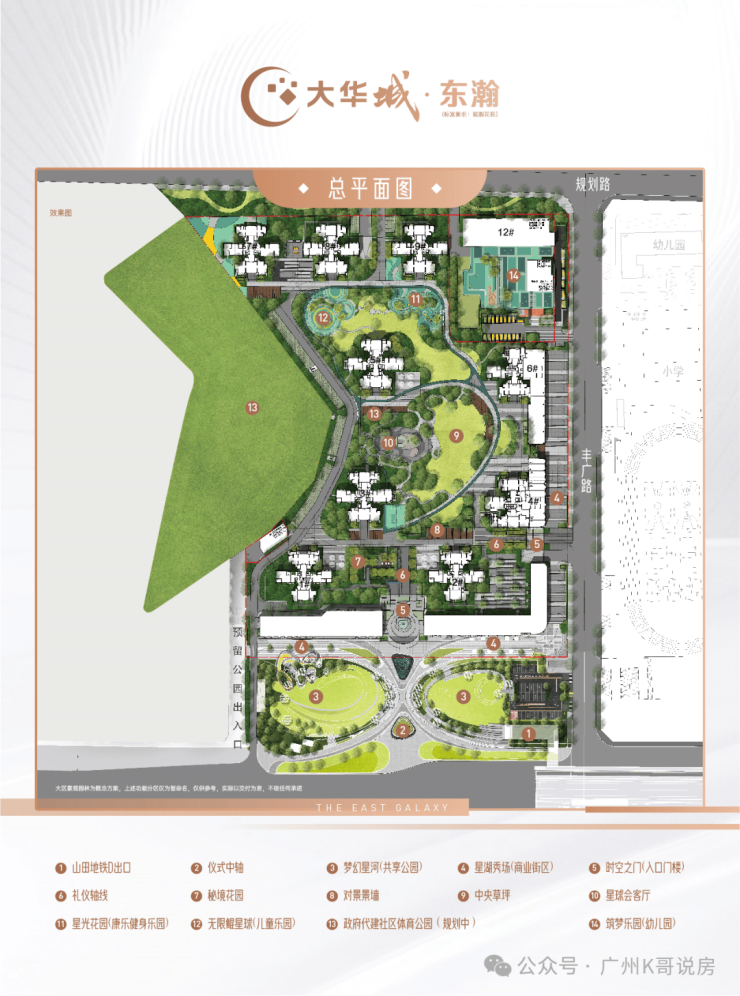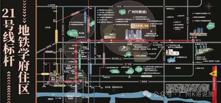 大华城——涵盖大华朱村中心城市地标(规划中)、地铁、教育、产业、商业、生态各项配套,名副其实的一生大城,未来容纳广州东约 30 万人口繁华居住地。
