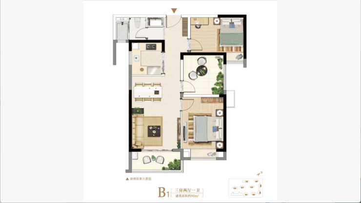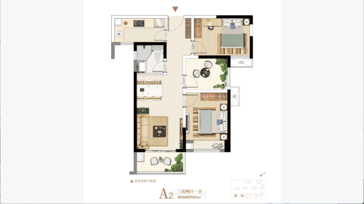 建面约80㎡精装三房,低总价,高品质。