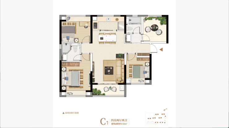 建面约110㎡精装奢阔四房