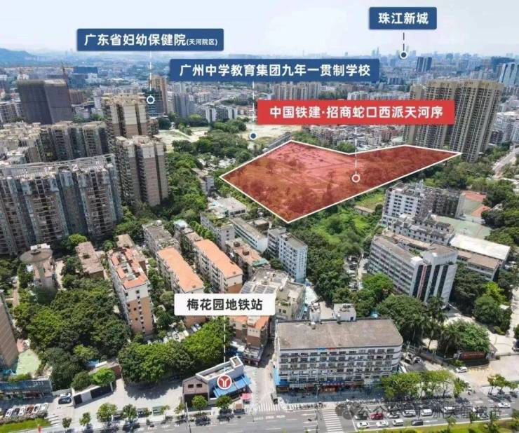 西派天河序这块地,就是之前的梅花铝厂地块,紧挨着越秀天河和樾府。