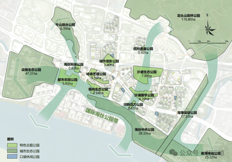 构建“6大城市生态公园 + 9大特色主题公园 + 7个口袋休闲公园”,打造“300M见绿 , 500M见园”的公园城市。
